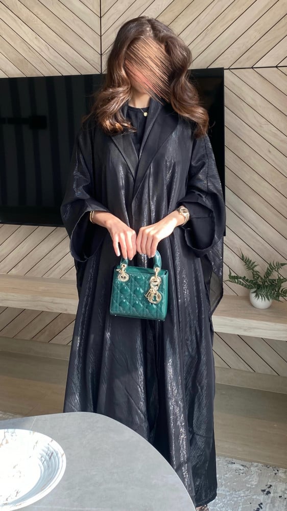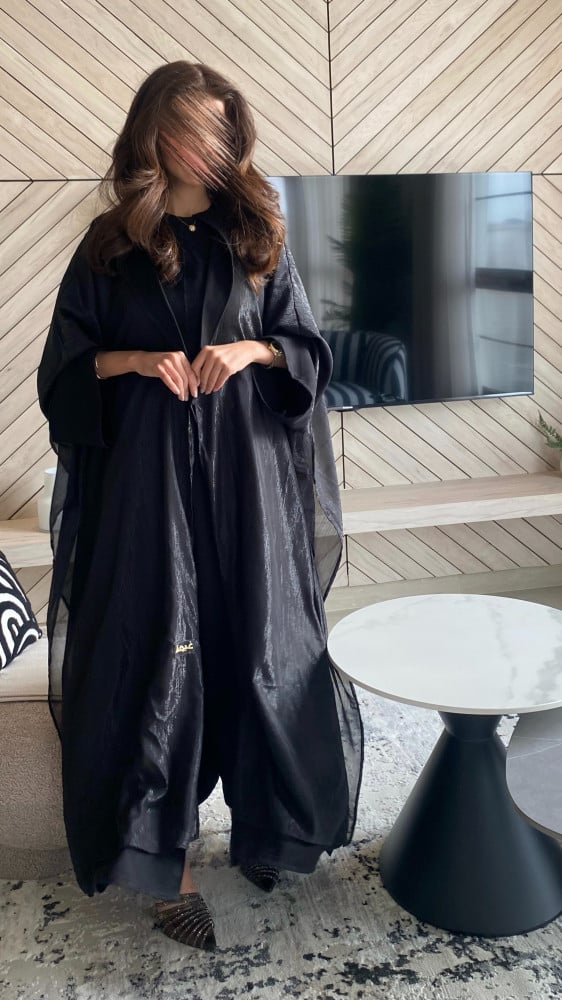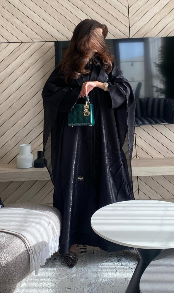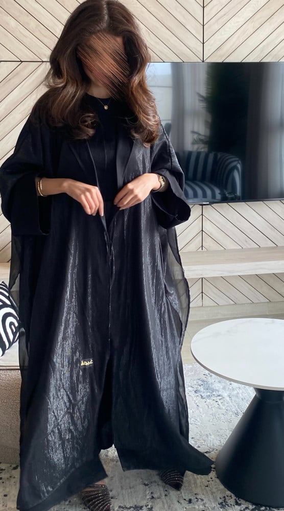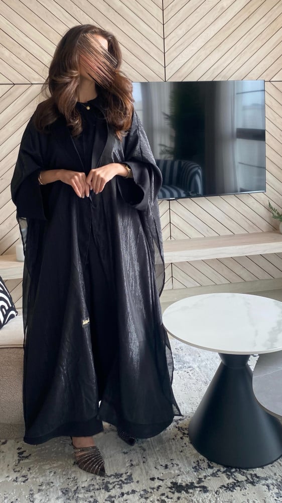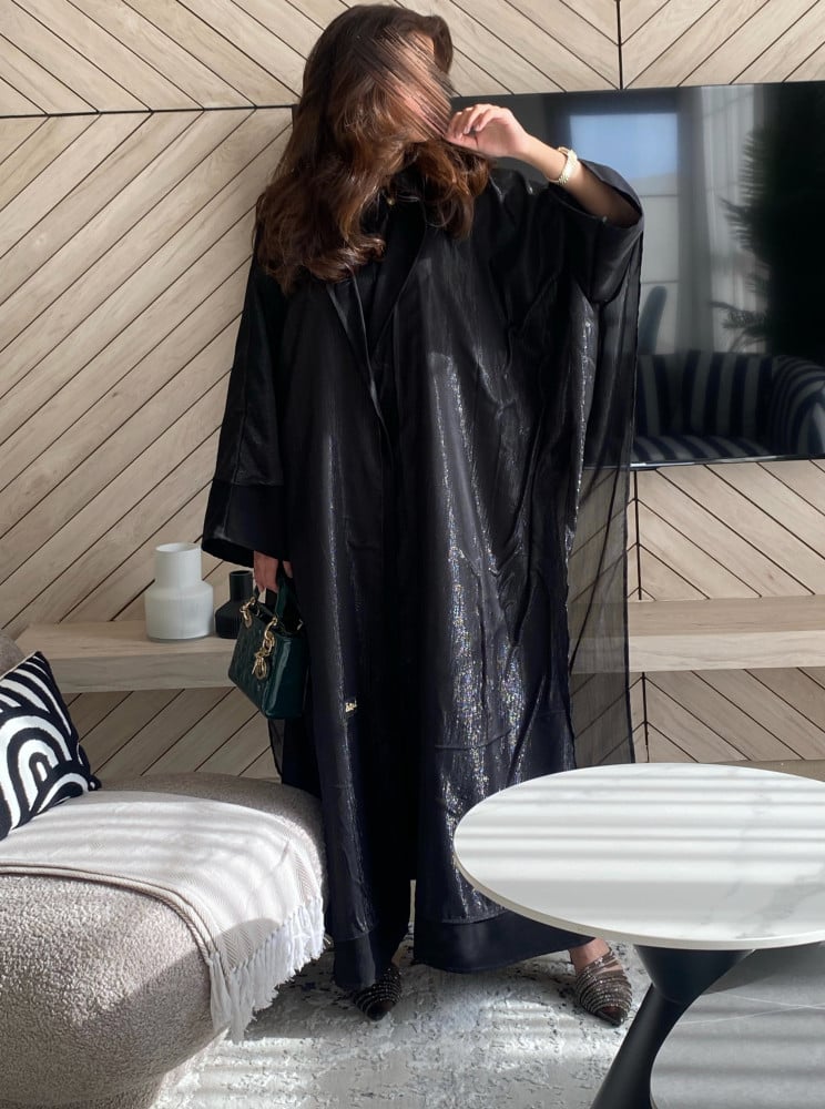 كريب/ كتان اسود، بكم مربع و فوقه كريب لماع