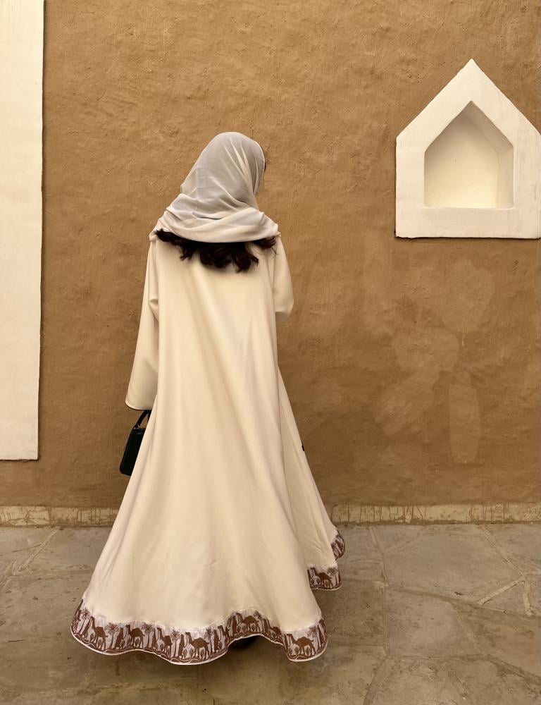 •عباية كريب ابيض بياقة ، شامل الطرحة